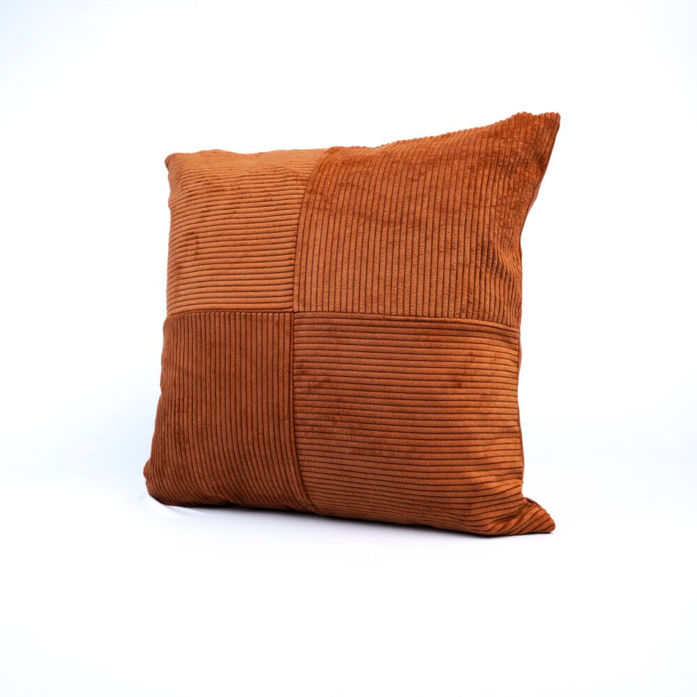 Corduroy Panel Design Cushion Cover – Rust Brown