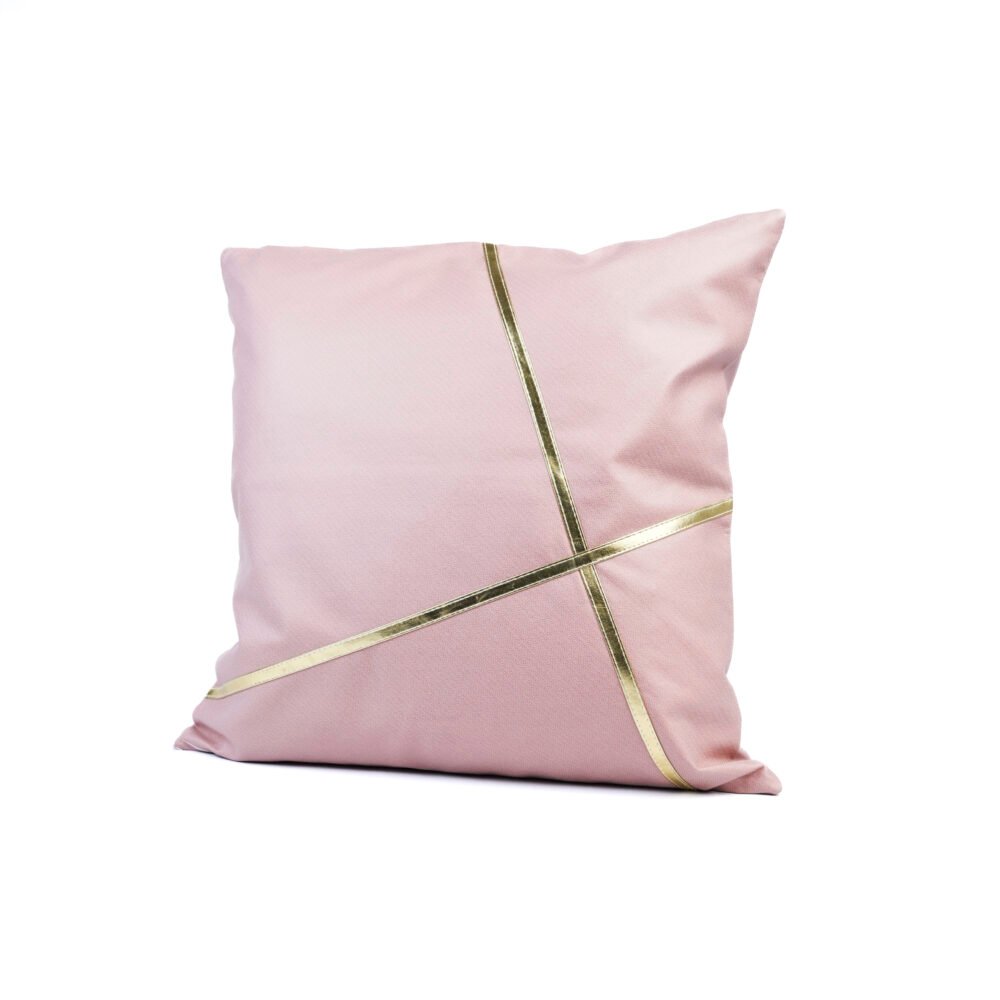 Gold Cross-Line Cushion – Blush Pink