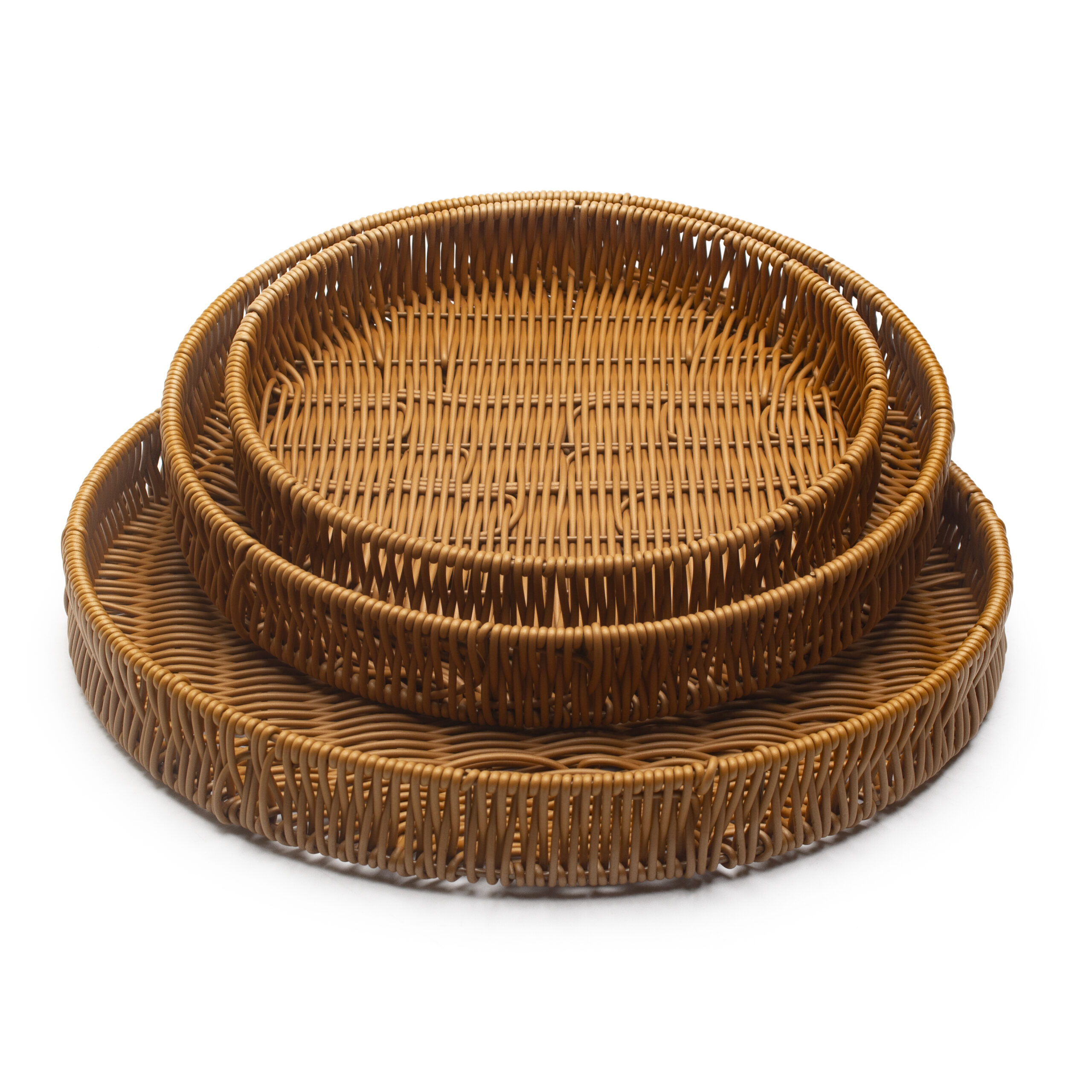 The Plastic Cane Tray Round embodies a seamless blend of traditional craftsmanship and modern functionality