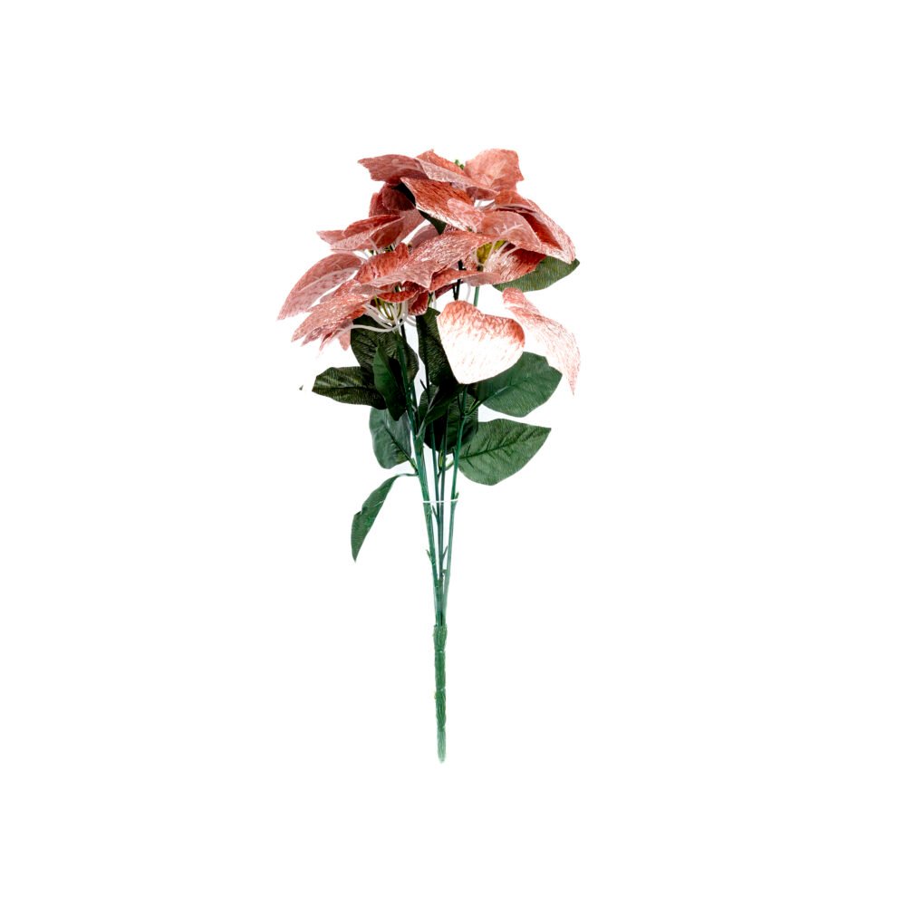 Add a touch of modern romance and seasonal charm with this breathtaking 5-flower artificial Poinsettia bunch in rose gold.